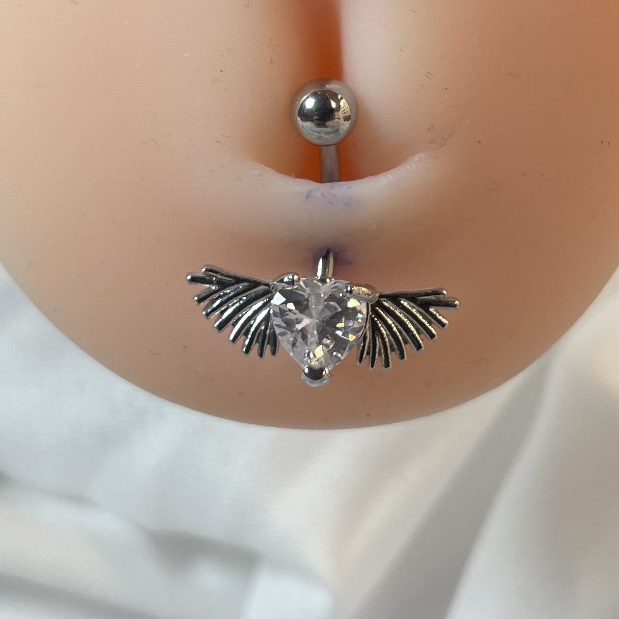 پیرسینگ ناف قلب بالدار، جواهری بینظیر که زیبایی و ظرافت را به ارمغان میآورد! طراحی منحصر به فرد قلب با بالهای درخشان، ظاهری شیک و جذاب به شما میبخشد. از جنس استیل ضد زنگ ساخته شده و برای پوست حساس مناسب است. با این پیرسینگ، در هر جمعی بدرخشید و نگاهها را خیره کنید!